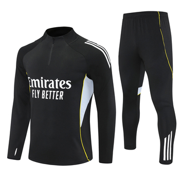Tuta da allenamento autunno inverno a maniche lunghe 24/25 Madrid mezza cerniera squadra traspirante uniforme da competizione per club europei In magazzino